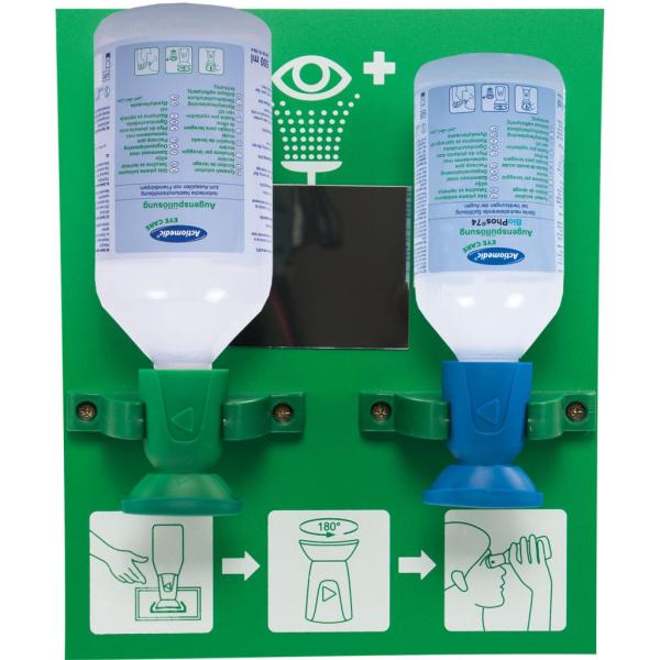 Actiomedic EYE CARE Double II fali szemkimosó állomás 1 x 500 ml 0.9% nátrium-klorid oldattal + 1 x
