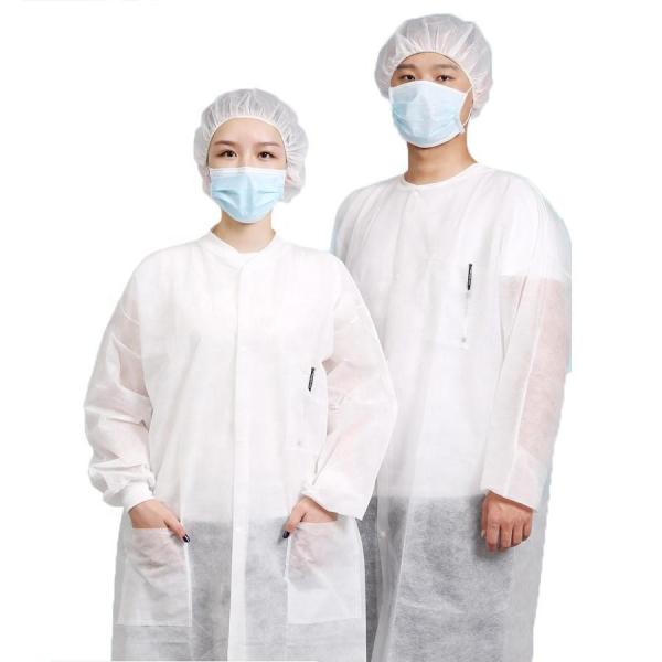 Látogató köpeny egyszerhasználatos PP patentos fehér 100x70cm, 24g, L