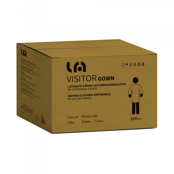 Látogató köpeny egyszerhasználatos PP tépőzáras fehér 110x135cm, 28g, L