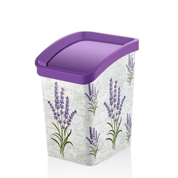 Műanyag Smart Click billenőfedeles szemetes, Levendula mintás 12L
