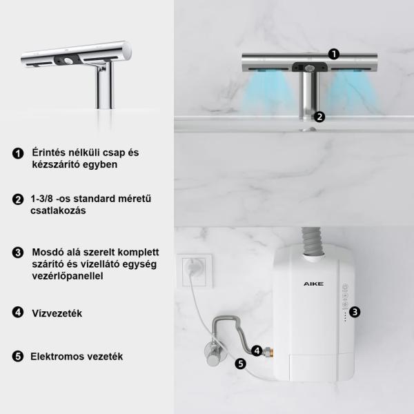 Rozsdamenetes érintés nélküli kézszárító és csaptelep egyben