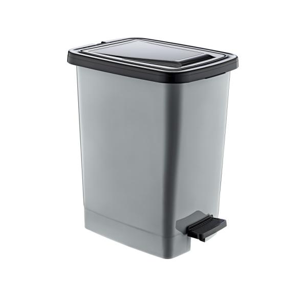 Slim Műanyag pedálos szemetes, ezüst/szürke, belső vödörrel 25L