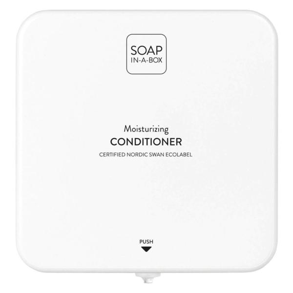 Soap-In-A-Box fényes fehér hajkondicionáló adagoló, előlap