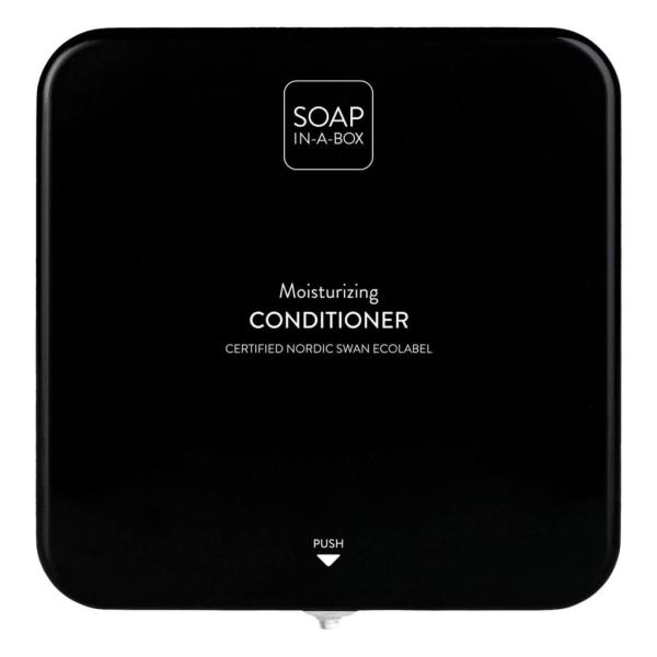 Soap-In-A-Box fényes fekete hajkondicionáló adagoló, előlap